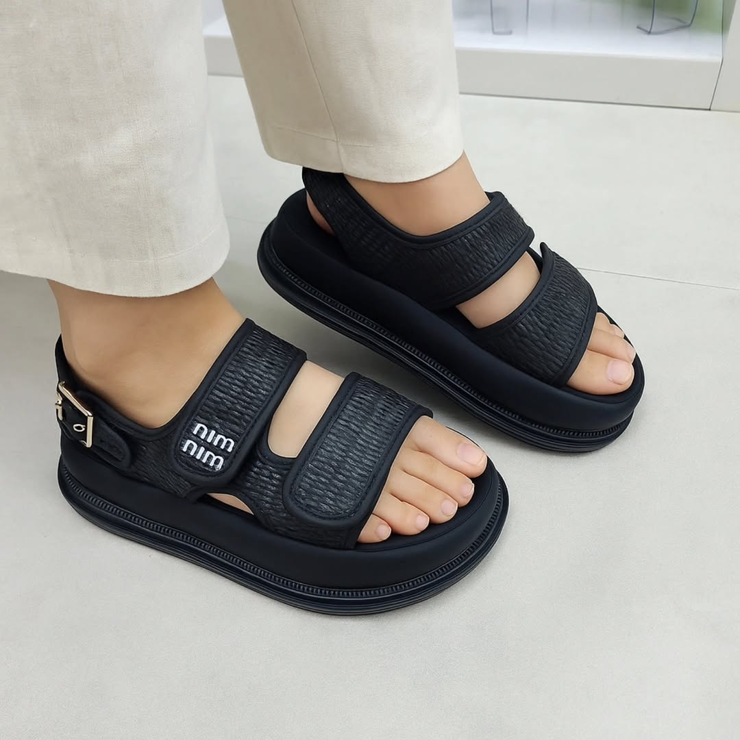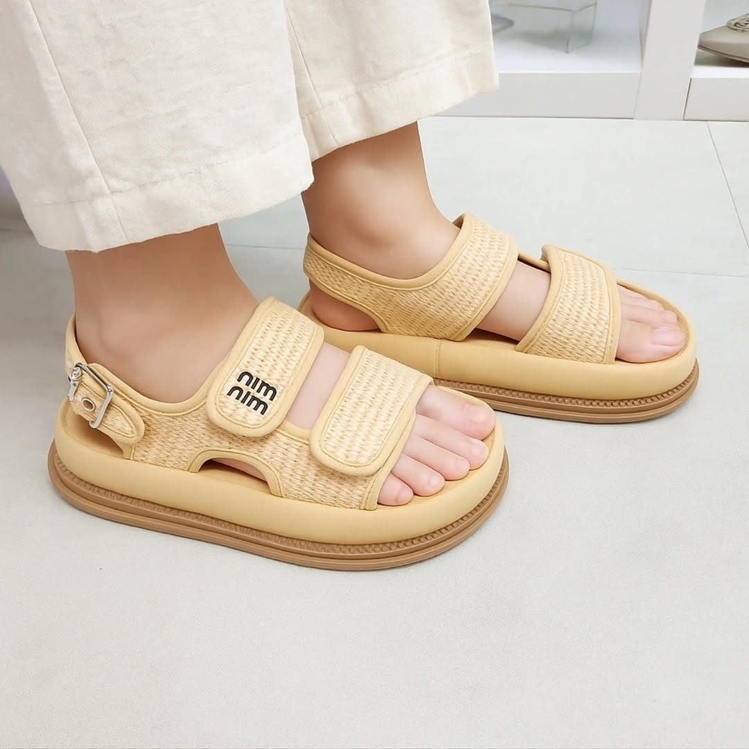 صندلهای زیبا با طراحی مدرن و کفی نرم، مناسب روزهای گرم پاییز و تابستان. ترکیب بافت حصیری و رنگهای خنثی، ظاهری آرام و شیک میسازد که هم با شلوارهای کرم لینن و هم با استایلهای کژوال هماهنگ است.